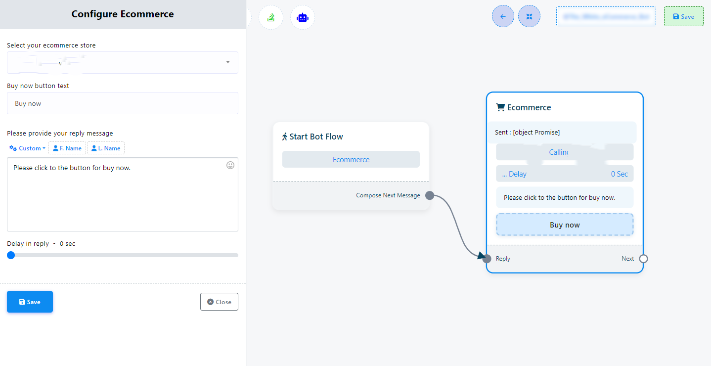 Componenta Ecommerce este o funcție de tip drag-and-drop, prietenoasă cu utilizatorul, care facilitează integrarea perfectă între botul tău Telegram și un magazin Ecommerce. Această capacitate puternică îți permite să stabilești o experiență completă de magazin online direct în interfața botului tău Telegram. (Vei găsi mai multe informații despre Ecommerce în secțiunea Ecommerce din documentație)