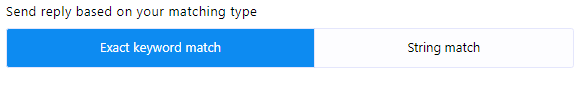 - Tip Potrivire: Poți alege tipul de potrivire dând click pe unul dintre cele două butoane furnizate: Potrivire Exactă Tastatură sau Potrivire Șir. În mod implicit, Potrivire Exactă Tastatură este selectată. Cu această opțiune, botul va porni doar dacă input-ul utilizatorului se potrivește exact cu cuvântul cheie. În contrast, cu Potrivire Șir, botul se va declanșa dacă input-ul utilizatorului se potrivește parțial cu cuvântul cheie.
