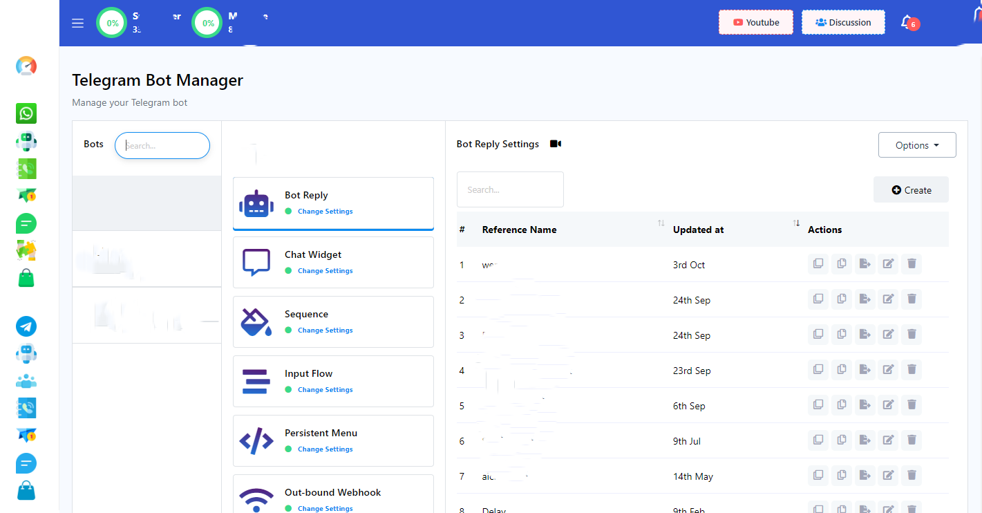 Accesează Bot Manager din meniul din stânga dashboard-ului și mergi la opțiunea Răspuns Bot - acolo vei găsi un buton Creează situat în colțul din dreapta sus. Pentru a iniția procesul de construire a unui bot, selectează contul de bot dacă ai mai mulți boți conectați, apoi dă click pe butonul Creează asigurându-te că opțiunea Răspuns Bot este selectată.