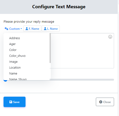 Input Mesaj: În câmpul de text, poți introduce mesajul tău de răspuns. Aici, ai și capacitatea de a include elemente dinamice precum prenumele utilizatorului, numele de familie sau variabile de câmp personalizat în mesajul de răspuns pentru a personaliza interacțiunea.
