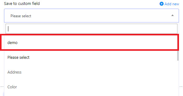 - Folosește Câmpul personalizat nou adăugat: Odată ce ai creat un câmp personalizat nou, îl poți selecta din meniul pop-up Salvează în Câmp Personalizat.