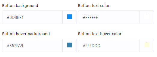 - Specifică culorile pentru fundalul butonului widget-ului de chat, culoarea textului butonului, fundalul hover al butonului și culoarea textului hover al butonului.