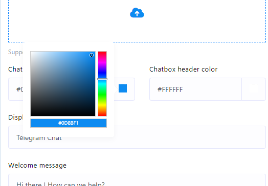 - Selectează o culoare din paleta de culori sau introdu un cod hexadecimal de culoare pentru fundalul header-ului widget-ului de chat.