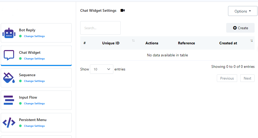 - În Managerul Bot Telegram, selectează secțiunea Widget Chat și dă click pe butonul Creează.