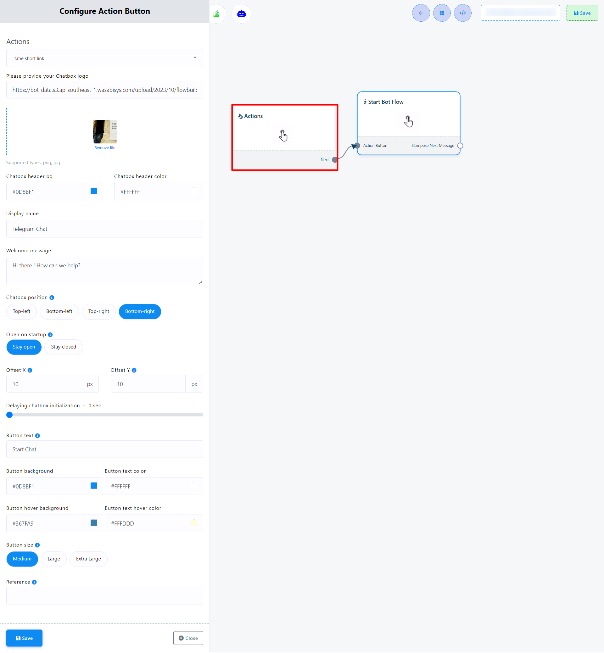 - Dă click pe butonul Salvează pentru a păstra configurările fluxului bot.