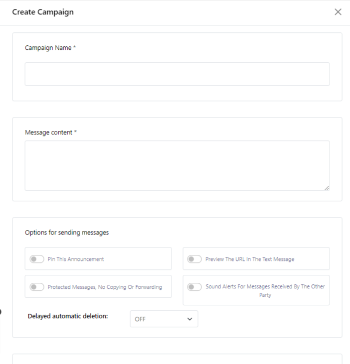 - Conținut mesaj: Compune mesajul în această secțiune.