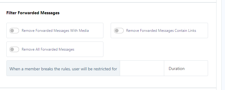 În plus, ai capacitatea de a impune restricții membrilor care încalcă regulile grupului. Când un membru încalcă regulile, poți alege să restricționezi accesul lor pentru o durată specificată. Botul va gestiona acest lucru automat, asigurând aplicarea fără probleme a regulilor grupului.