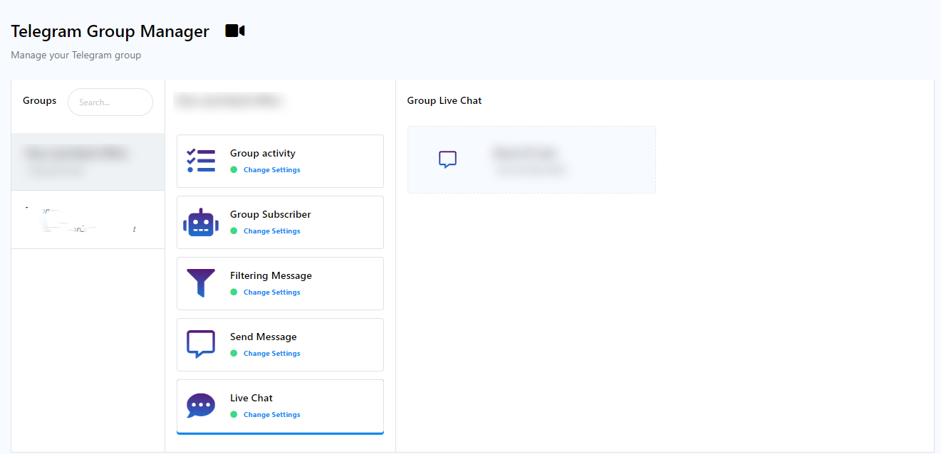 Pentru a utiliza funcția Live Chat, trebuie să creezi un cont și să stabilești o conexiune cu grupul tău Telegram. Odată ce această conexiune este stabilită, poți accesa funcția Live Chat navigând la tab-ul Live Chat din dashboard.