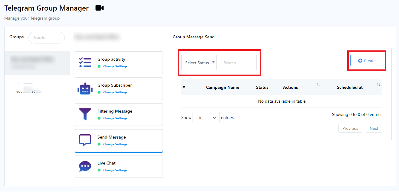 - Pentru a iniția procesul, navighează la Manager Grup Telegram și selectează un bot din fereastra Live Chat a grupului. Dă click pe botul ales pentru a continua.