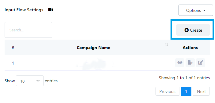 - Dă click pe butonul Creează pentru a iniția crearea unui nou Flux de Input Utilizator.