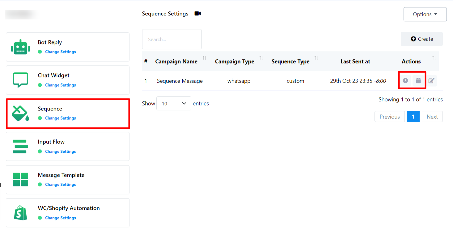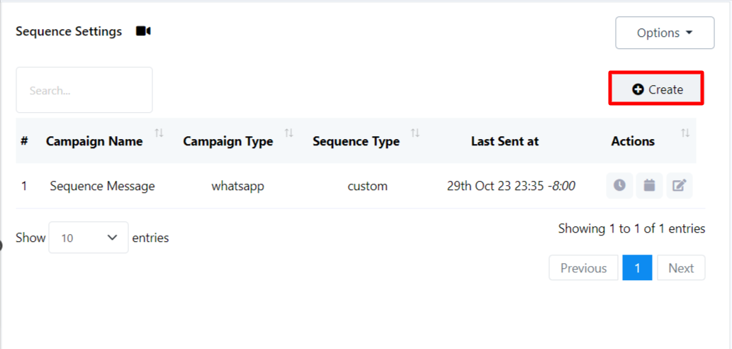 Creează o Nouă Campanie de Mesaje Secvență: De asemenea, există opțiunea de a crea o nouă secvență de aici. Pentru a crea o nouă secvență, dă click pe butonul Creează.