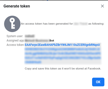 Acum trebuie să colectezi un token de acces permanent pentru a-ți conecta botul.