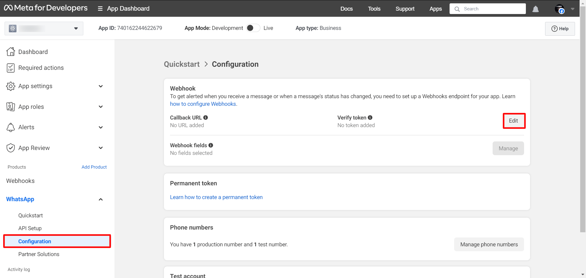 În secțiunea webhook, vei vedea un buton de editare. Acum dă click pe butonul de editare.