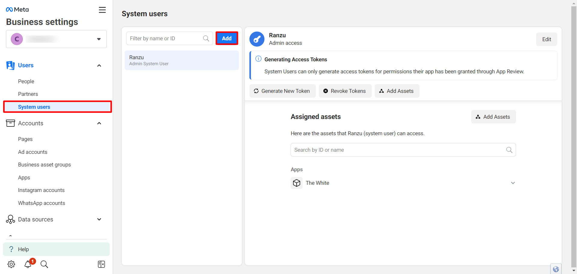 Acum trebuie să creezi un utilizator. Pentru a crea un utilizator, mai întâi trebuie să selectezi Utilizator sistem în bara laterală stângă a paginii de setări business. Acum trebuie să adaugi utilizator dând click pe butonul adaugă.