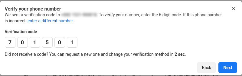 Ei bine, după furnizarea numărului de telefon și alegerea opțiunii de verificare, dă click pe butonul următor.