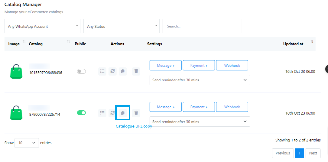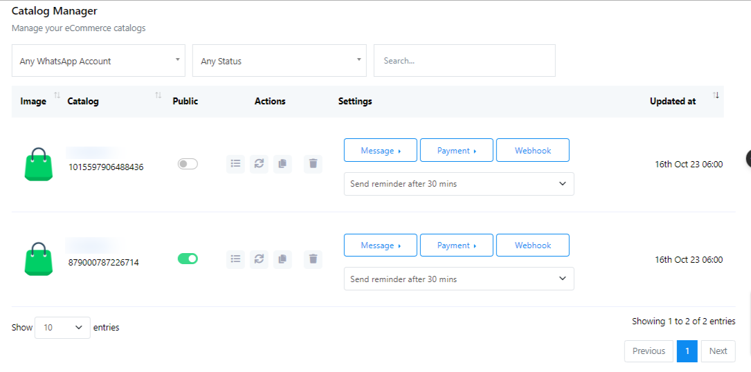 Catalogul Ecommerce WhatsApp este o funcție robustă care împuternicește companiile să-și prezinte și să-și gestioneze produsele sau serviciile direct în cadrul platformei de mesagerie WhatsApp. Acest instrument servește ca o vitrină virtuală, permițând companiilor să creeze un catalog al ofertelor lor, complet cu descrieri de produse, imagini, prețuri și link-uri directe pentru achiziție ușoară.