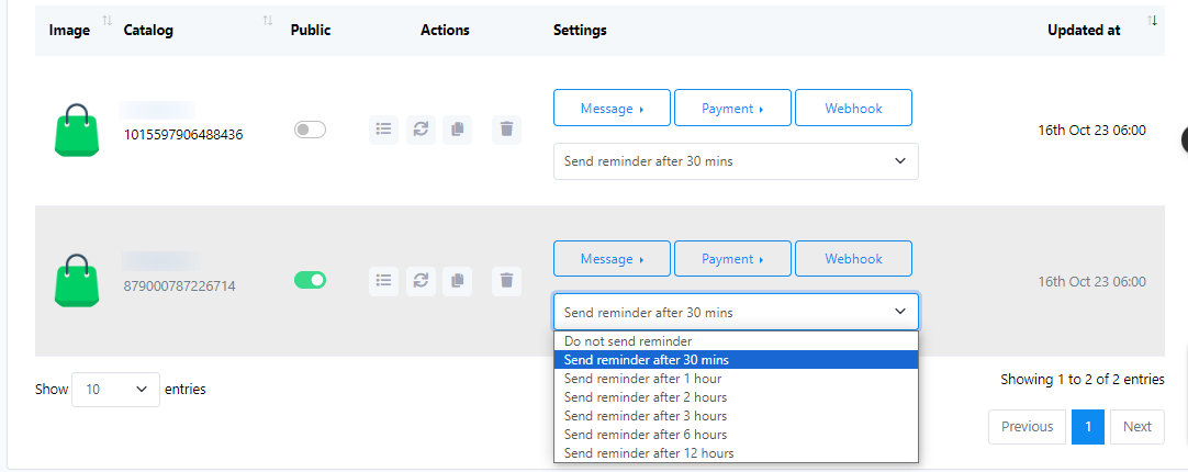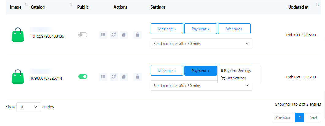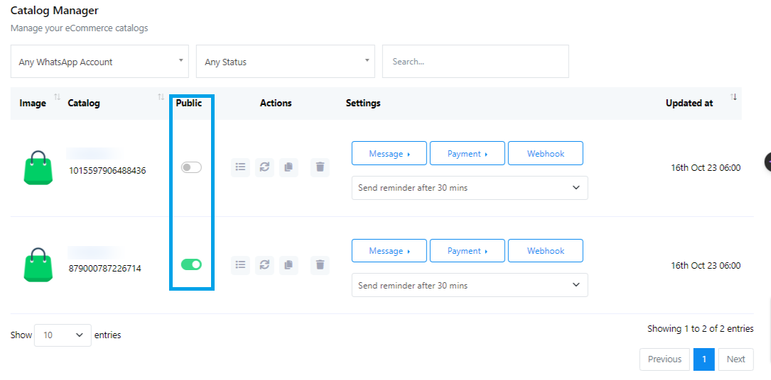 - Vei găsi numele și ID-ul catalogului. Există o opțiune pentru a activa sau dezactiva statusul public.