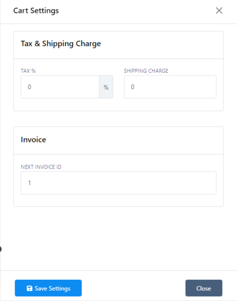 - Configurează setările coșului, inclusiv procentul de taxe și costurile de expediere.