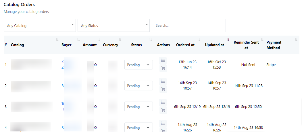 - Poți vizualiza comenzile catalogului și schimba statusul unei comenzi din Comandă Catalog din partea de sus a paginii.